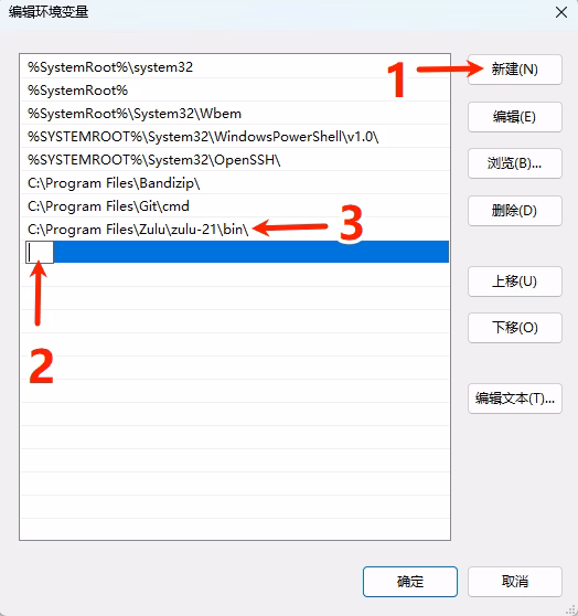 可以看到,在名为“编辑环境变量”的界面中,我安装包安装的两个 Java(zulu 8 和 zulu 21)都有环境变量(红框部分)。